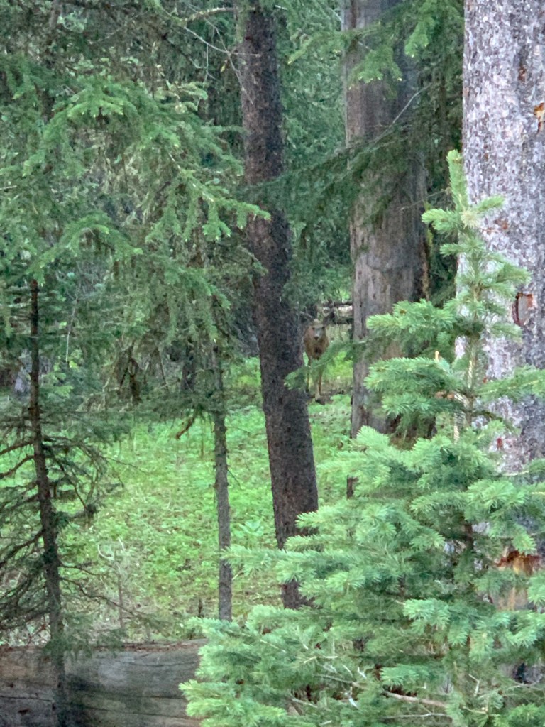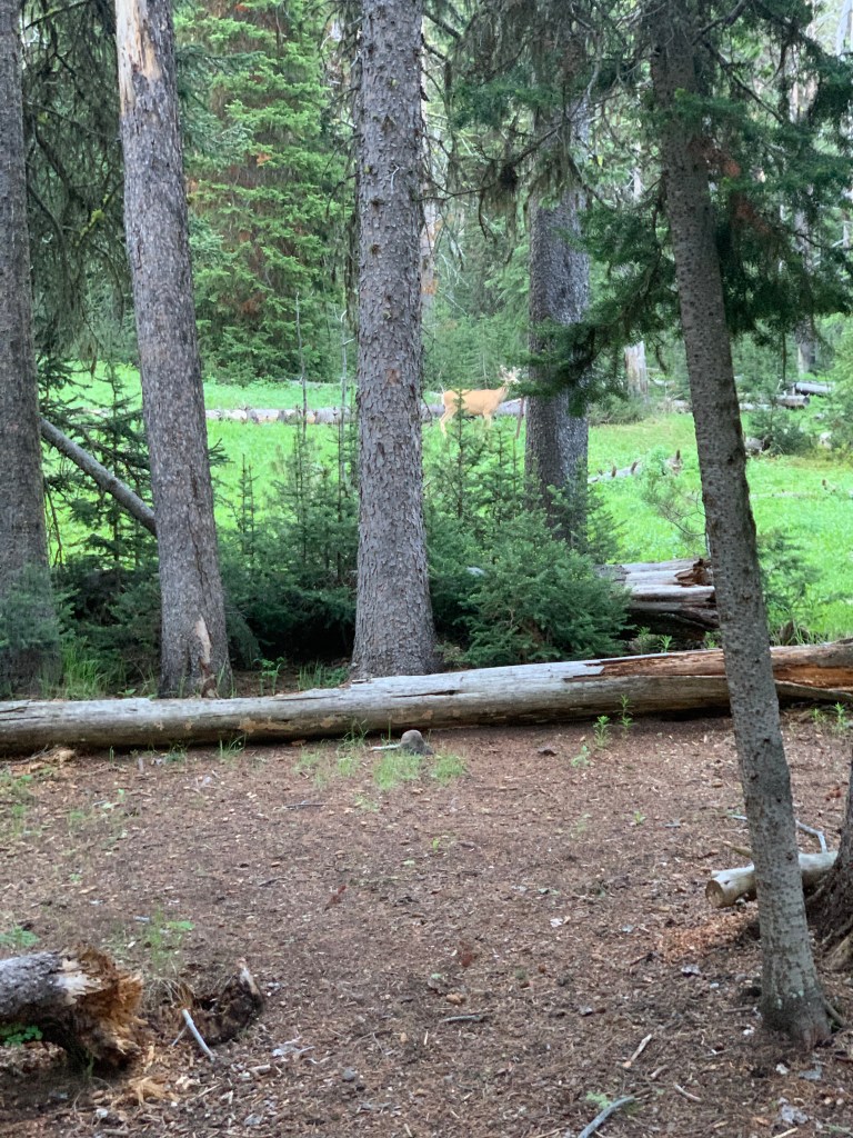 I stared out over the river valley and scoured the edge of the forest with binoculars for hours, and the only animals I saw, other than birds, were two fellow human beings, headed up to Bliss Pass.