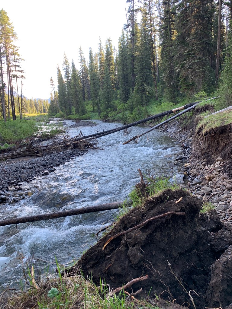 It was late June, and the river water levels were very high. I immediately realized that in order to even get started, I need to cross a raging Pebble Creek. It is important to note that while it is called a “creek,” this waterway is by no means what I think of as a “creek,” but in June it certainly meets the definition of a river.